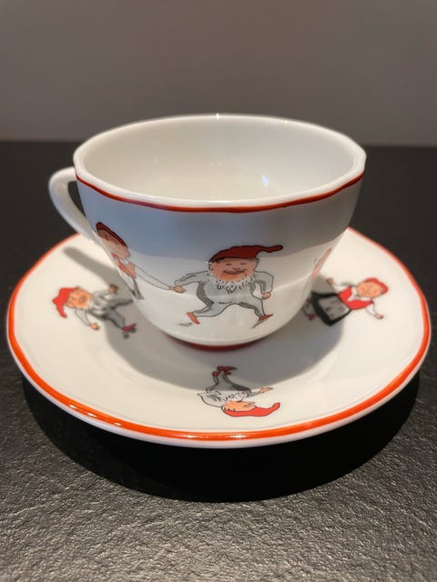Magnor Glassverk Finn Schjøll Anna Florytale kopp og asjett blomsterdekor 2 stk.