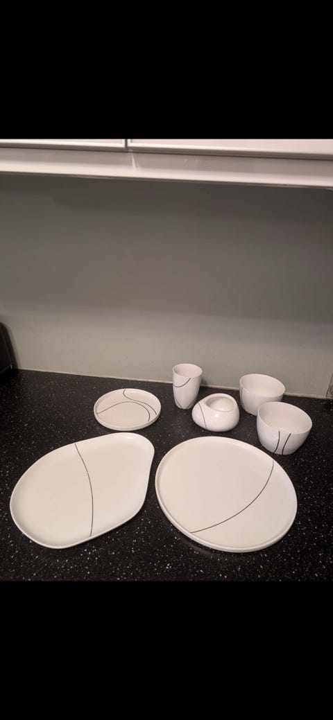 4 Tallerkner og 3 skåler