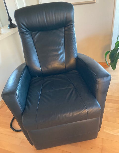 Svart lenestol gis bort.