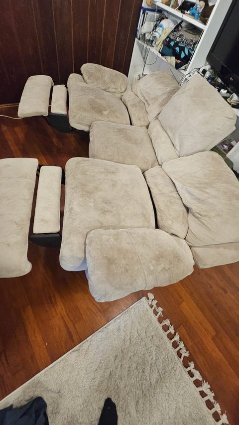 Beige reclinersofa i mikrofiber