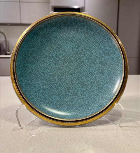 Nathalie servise fra Porsgrund P. med Gullkant Tallerkener, Kopper og bolle