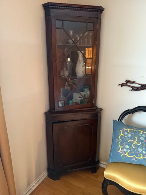 Antikk hjørneskap selges.