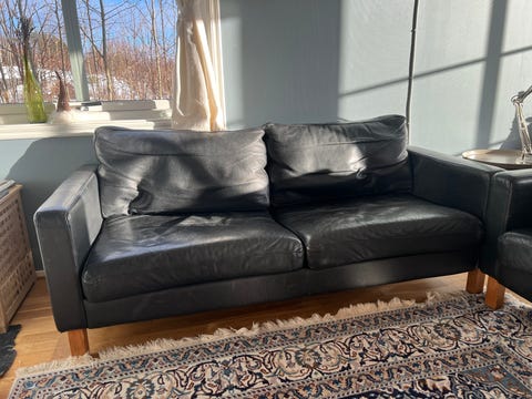 Svart skinnsofa