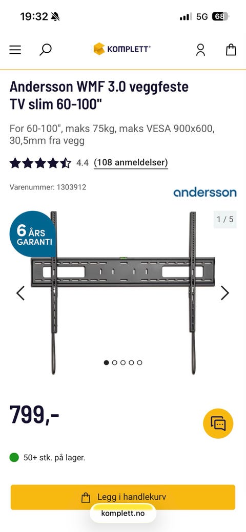 SMS TV veggstativ selges