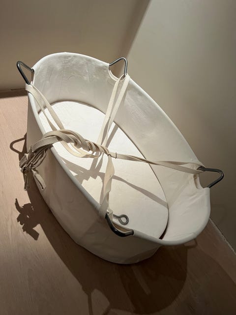 Hvitmalt vugge i heltre