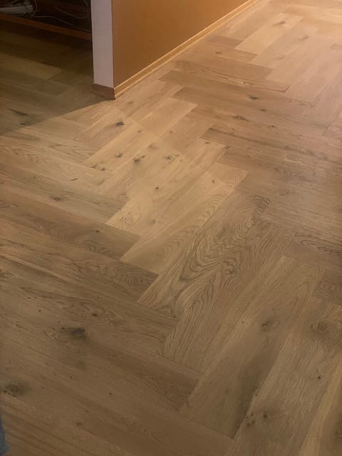 Massiv fiskebensparkett i eik 68 m²