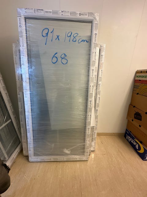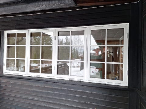 Hvitt vindu med glassfelt
