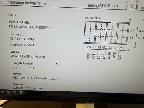 Fastkarm vindu 110 x 100
