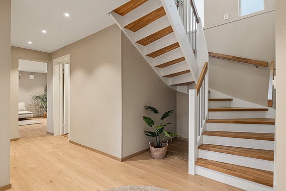 Moderne trapp i massiv eik med lukkede Z-trinn