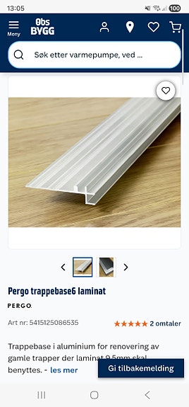 Pergo trappeprofil aluminium for laminat 9,5 mm