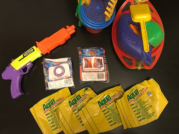 Selger mye forskjellig av barneleker til svømming etc.