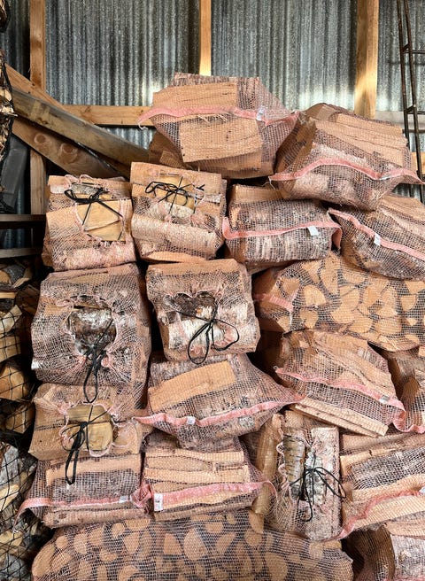 9sekker 40l bjørkeved 23cm +2sekker 20l tennved levert