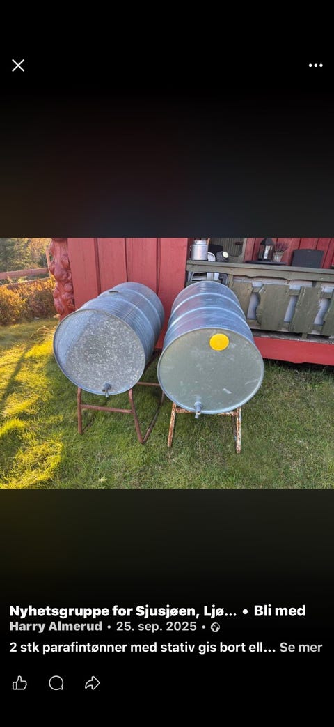 Metalltønner på stativ med tappekran