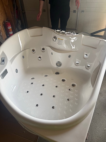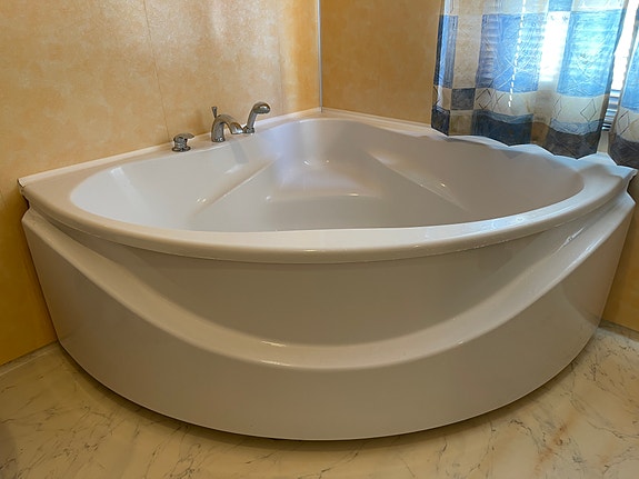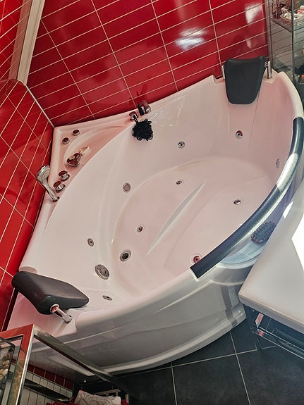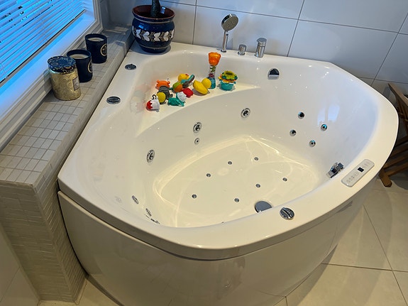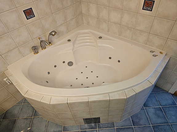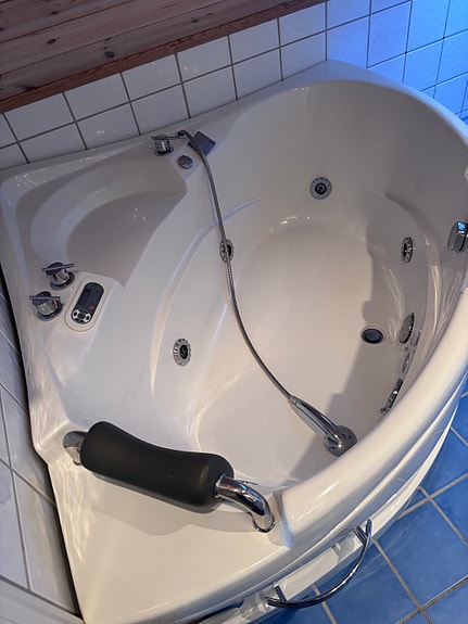 Hjørne boblebad med massasjedyser og elektronisk panel