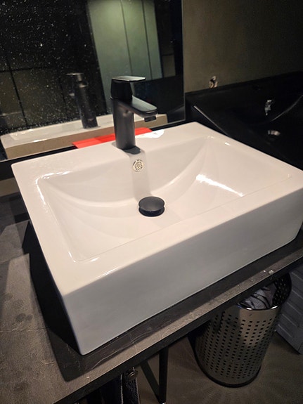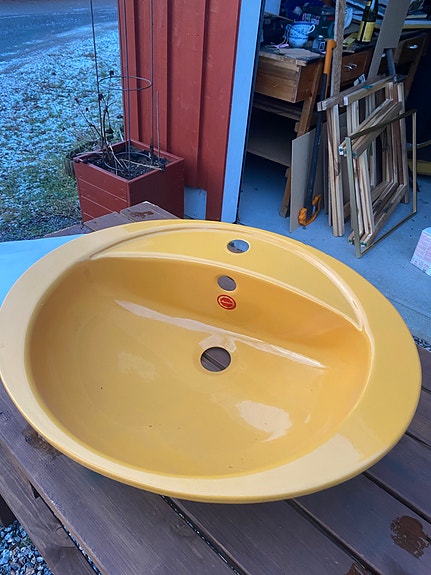 Oransje servant med blandebatteri