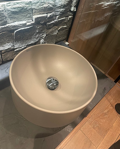Baderomsservant i beige kompositt (granitt) Ø40cm