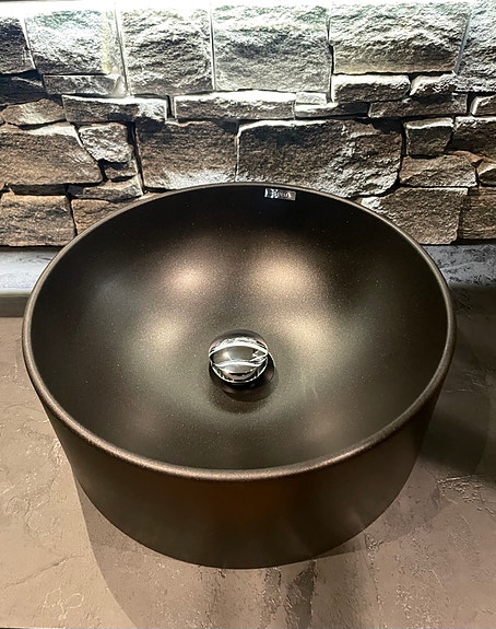 Baderomsservant Ø40cm i svart kompositt (granitt)