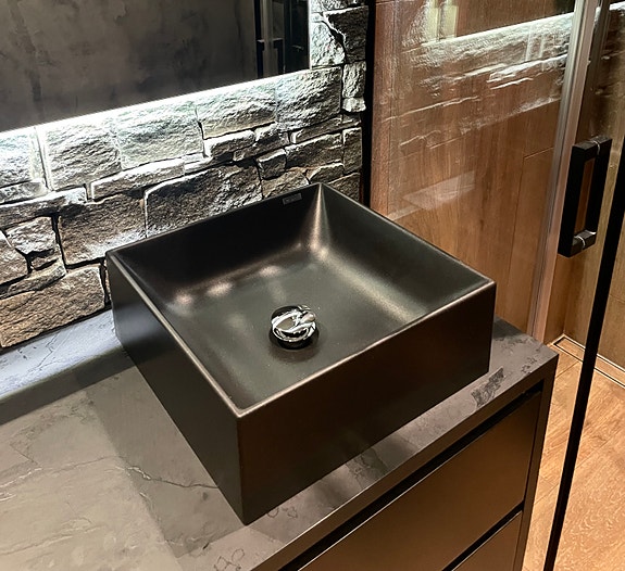 Baderomsservant i svart kompositt (granitt), 40x40cm