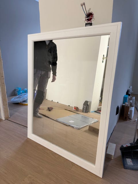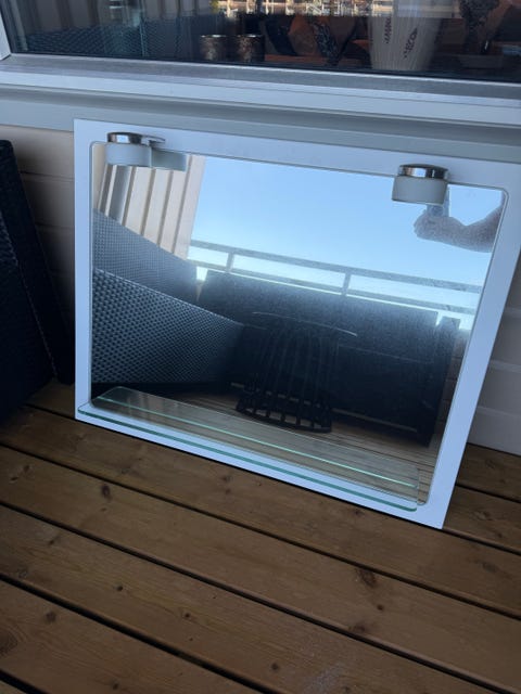 Speil med hvit ramme og lys