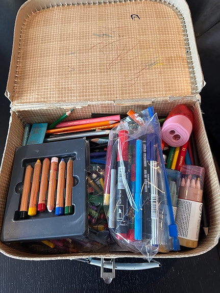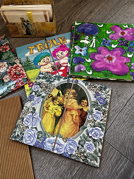 Hobby pakke farga ispinner, klistremerker, diverse figurer i ramme