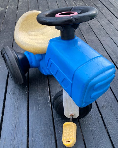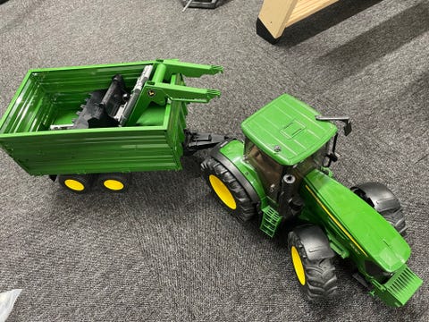 Leketraktor med tilhenger.