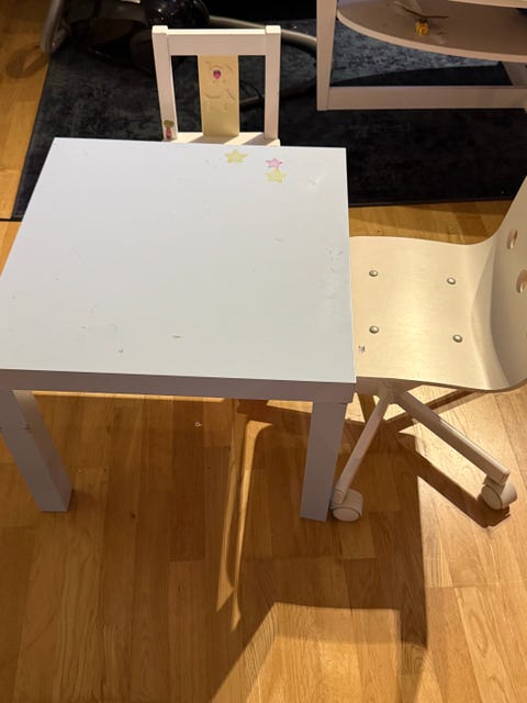barnebord og 2 stoler gisbort