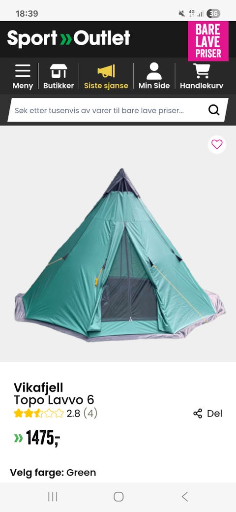 Ubrukt lavvo til salgs. Bud over kr 13900 vurderes.