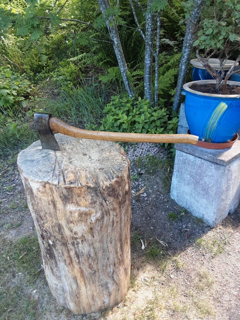 Øks med håndlaget skaft