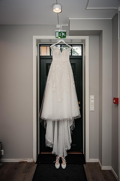 Ubrukt brudekjole med sko og slør