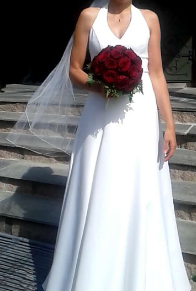 Brudekjole i thai silke (S), halterneck + underskjørt