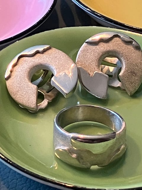 Sølv øreklips og ring