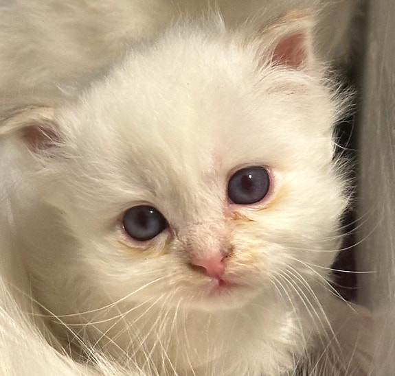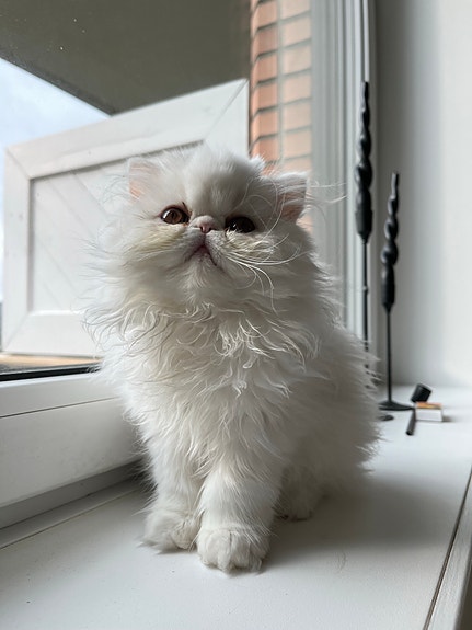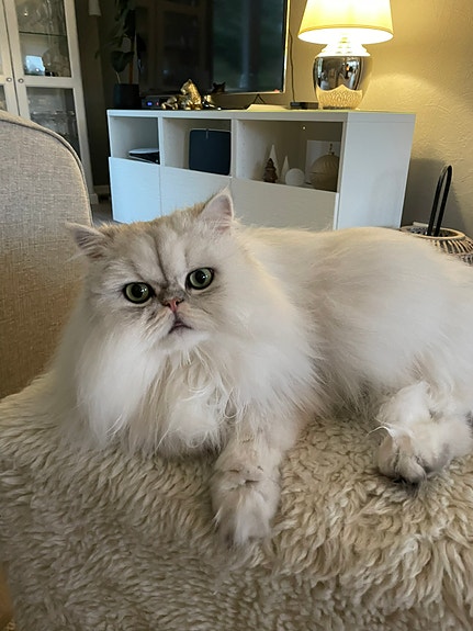 Helt hvit renrase perserkatt søker nytt kjærlig hjem