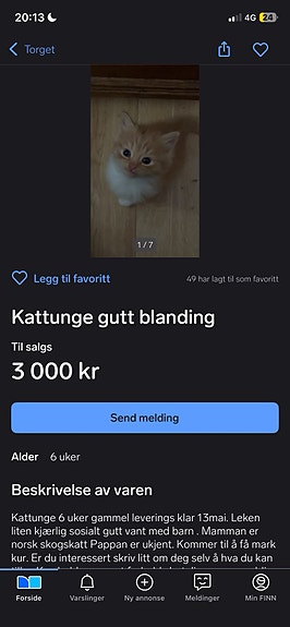 Supersøt chinchillaperser kattunge søker nytt hjem 💖