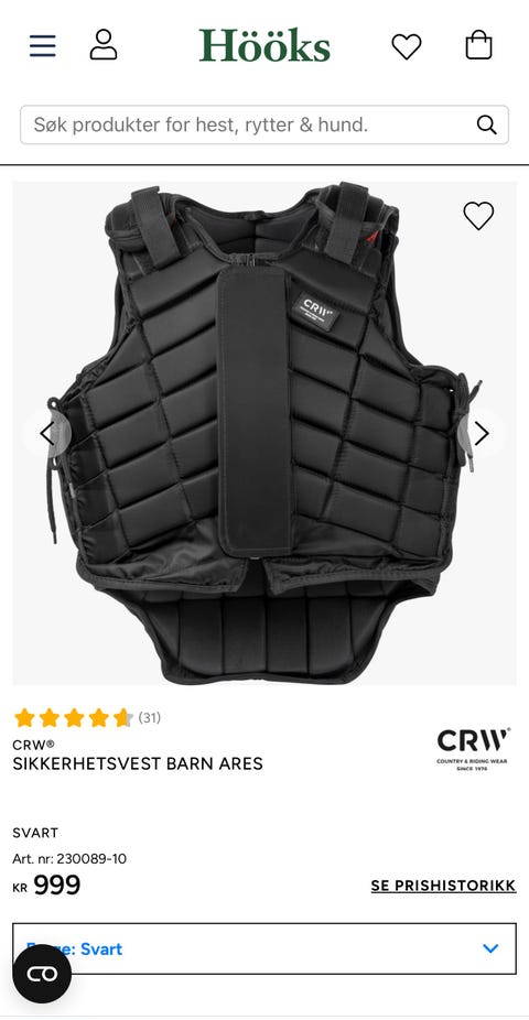 Ridevest sikkerhetsvest str. s