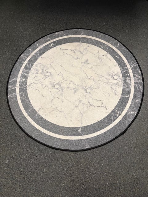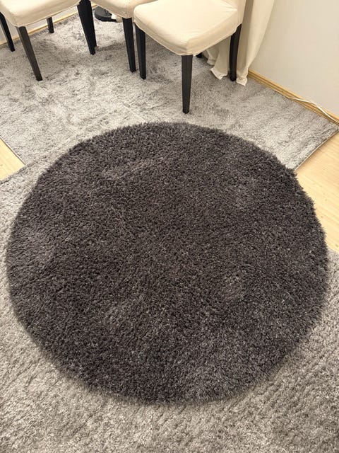 Rundt grått teppe/rye