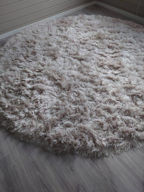 Rundt grått shaggy-teppe