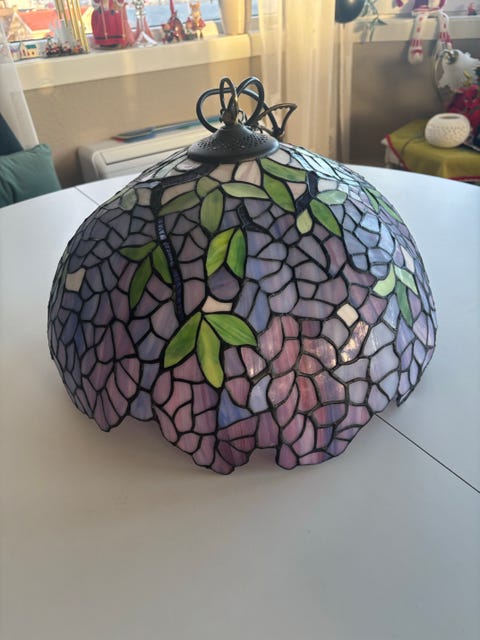 Tiffani stil taklampe i glass
