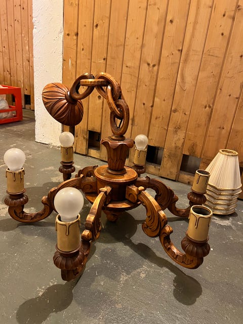 Håndskåret lysekrone i tre