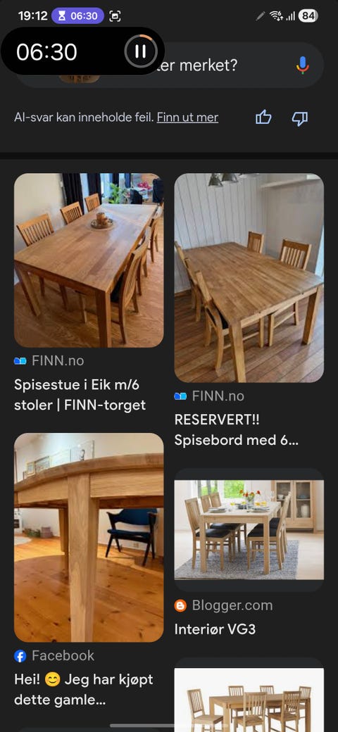 Sandvik spisestuemøbler i eik ønskes kjøpt