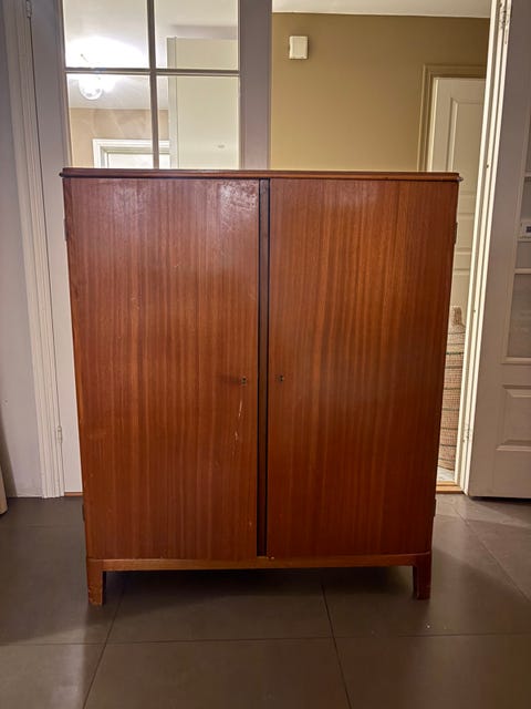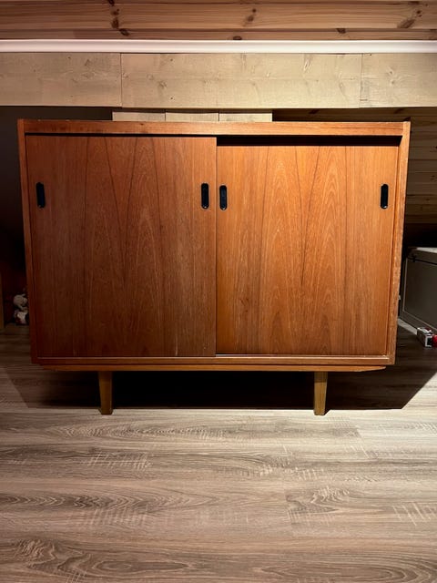 Teak skap med skyvedører