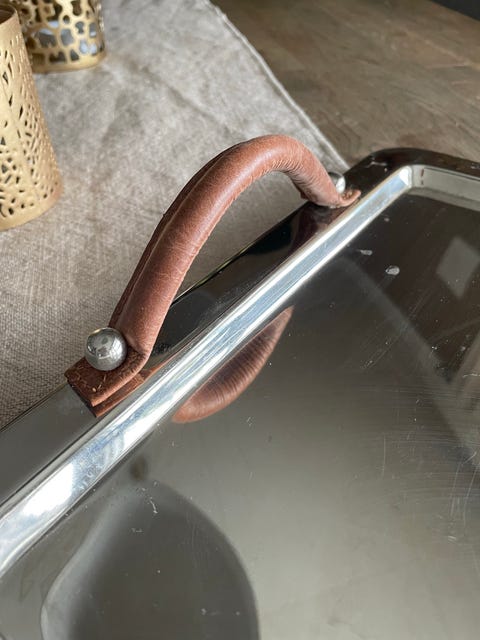 Fat med lærhåndtak