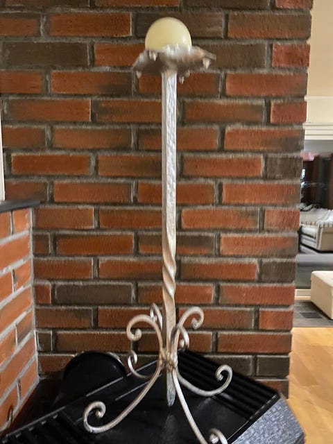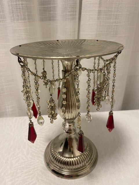 Sølv farget pidestall.