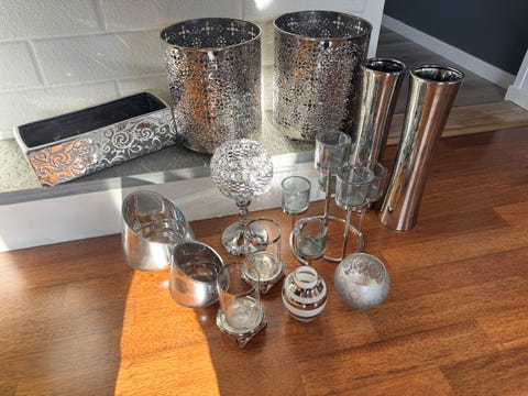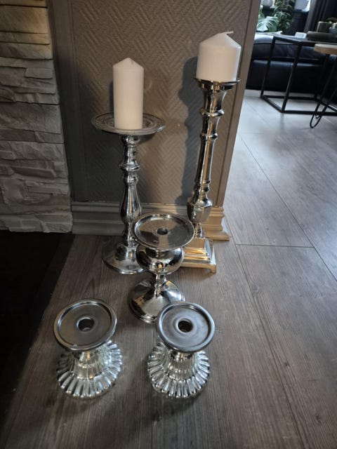 Lysestaker i sølv farge
