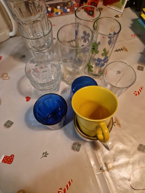 9x glass & 2xkopp gis bort