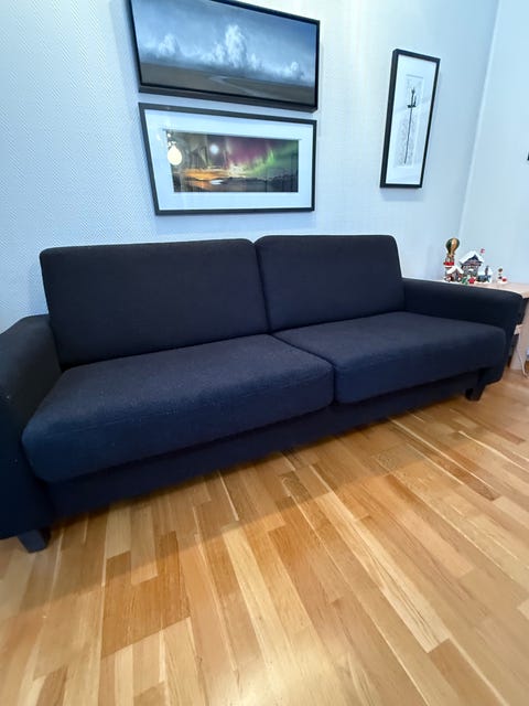 Blå stripet sofa