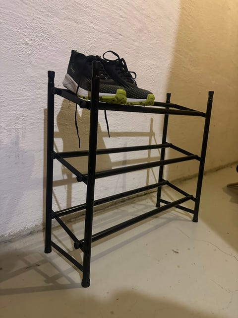 Skohylle metallstenger.
