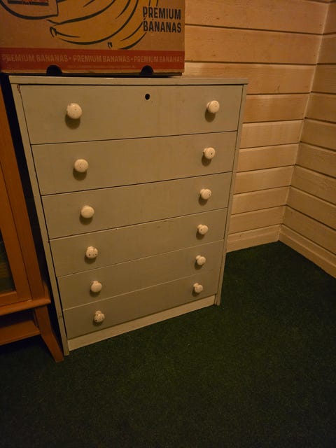 Kommode med skuffer gis bort - må repareres - KASTES IMORGEN TIDLIG