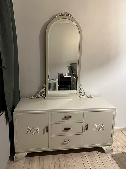 Hvitmalt seksjon og kommode