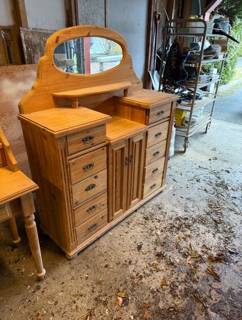 Kommode i heltre furu med speil