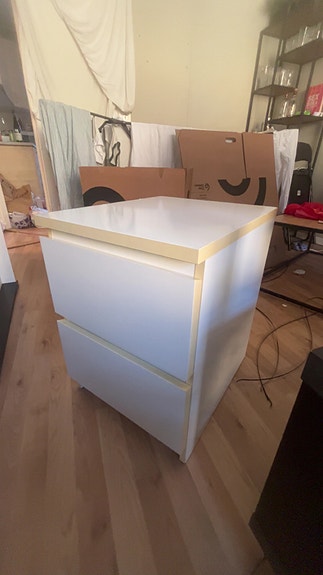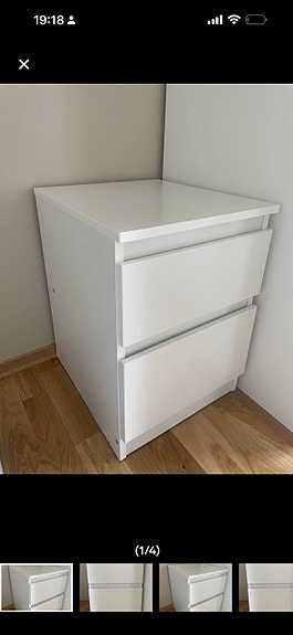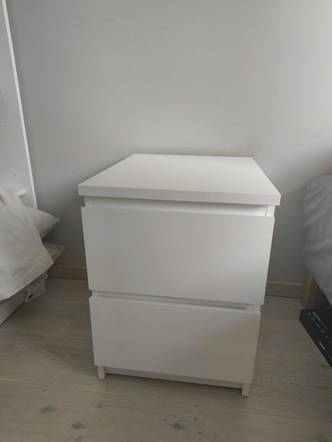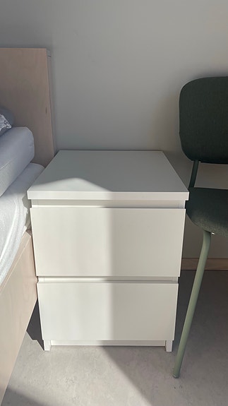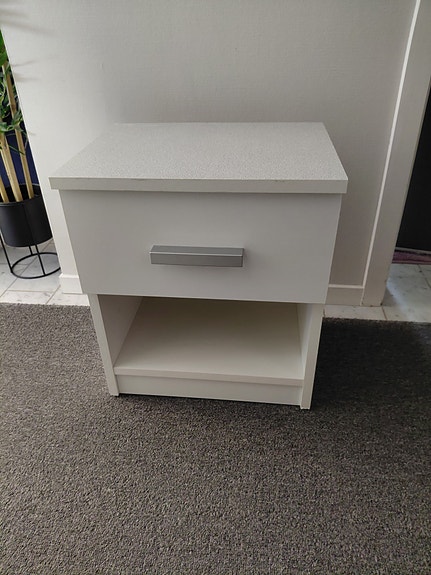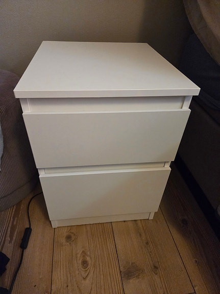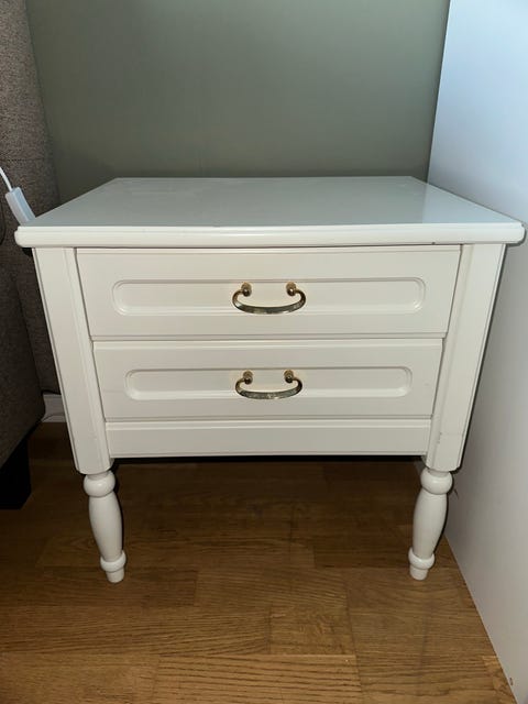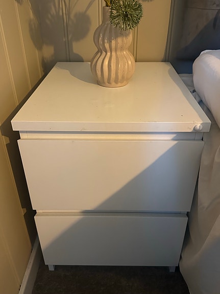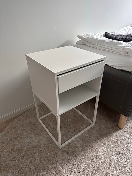 Hvit kommode/nattbord fra JYSK – som ny + kurv